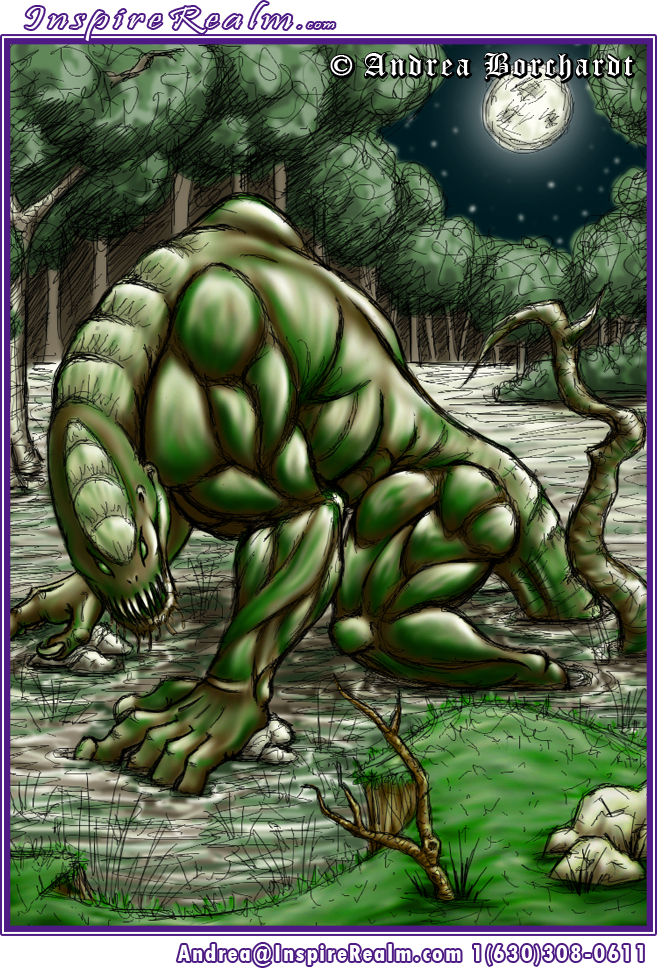 I felt like drawing a scary swampy critter, and this is what resulted. I created this sketch in Photoshop.