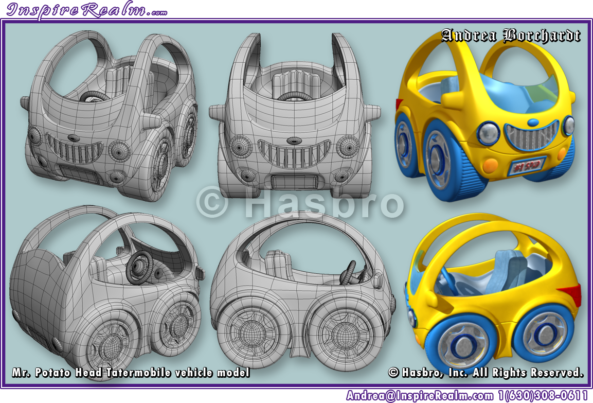 This vehicle model was made for a Mr. Potato Head Talkin' Tatermobile TV commercial. The model was created using photo references of the toy it was based on. I created the geometry for the piece while the shaders were made by Jennifer Hoffman.